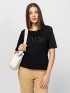 Dámske tričko s krátkym rukávom vyrobené z prémiového bavlneného materiálu, s okrúhlym výstrihom a rukávmi po lakte. Vyšívaná a perlová dekorácia na prednej strane. Materiál: 100%