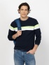 Pánske tričko s dlhým rukávom a okrúhlym výstrihom, klasický strih, pruhy na hornej časti a malé logo značky na prednej strane. Materiál: 100% bavlna, piqué. Model má 188 cm a nosí
