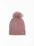 Dámska pletená čiapka s krúteným pleteným vzorom, vyrobená z pohodlnej zmesi vlny, s drobnými flitrami, ozdobným brmbolcom a malým kovovým logom značky na boku. Materiál: 50% akryl... Viac informácií