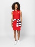 Dámske šaty bez rukávov v štýle polo s golierom na zips, dĺžka nad kolená. Materiál: 97% bavlna, 3% elastan, piqué. Modelka meria 175 cm a má na sebe veľkosť S.