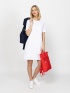Dámske šaty, rovný strih, okrúhly výstrih, dĺžka nad kolená, krátke rukávy, vyrobené zo vzorovanej látky. Materiál: 50% viskóza, 48% polyester, 2% elastan. Modelka meria 175 cm a má na sebe veľkosť S.