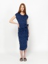 Dámske šaty, rovný strih, okrúhly výstrih, dĺžka pod kolená, spadnuté ramená, vyrobené zo vzorovanej látky. Materiál: 50% bavlna, 50% viskóza, single jersey. Modelka meria 175 cm a