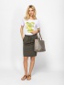 Dámska puzdrová sukňa, dĺžka po kolená, s elastickým pásom a šnúrkou, vyrobená z pruhovanej a jednofarebnej látky. Materiál: 63% viskóza, 32% nylon, 5% elastan. Modelka má 175 cm a nosí veľkosť S.