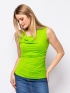 Dámske tričko bez rukávov, s dekoratývnym výstrihom. Materiál: 50% bavlna, 50% modal, single jersey. Modelka je 175 cm vysoká a má na sebe veľkosť S.