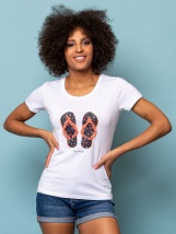 Dámske tričko s krátkymi rukávmi, okrúhlym výstrihom a s potlačou vpredu. Materiál: 50% Bavlna, 50% Modal, single jersey.